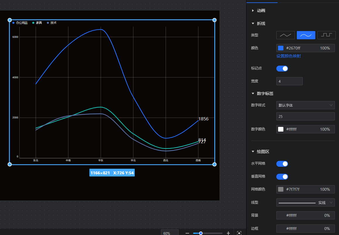 - 折线:设置折线类型、颜色、标记点和宽度。