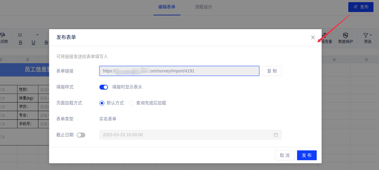(1)新建一个制式表单,命名为“员工信息登记表”,如果需要外部用户填写的话则填报权限可设置为匿名。