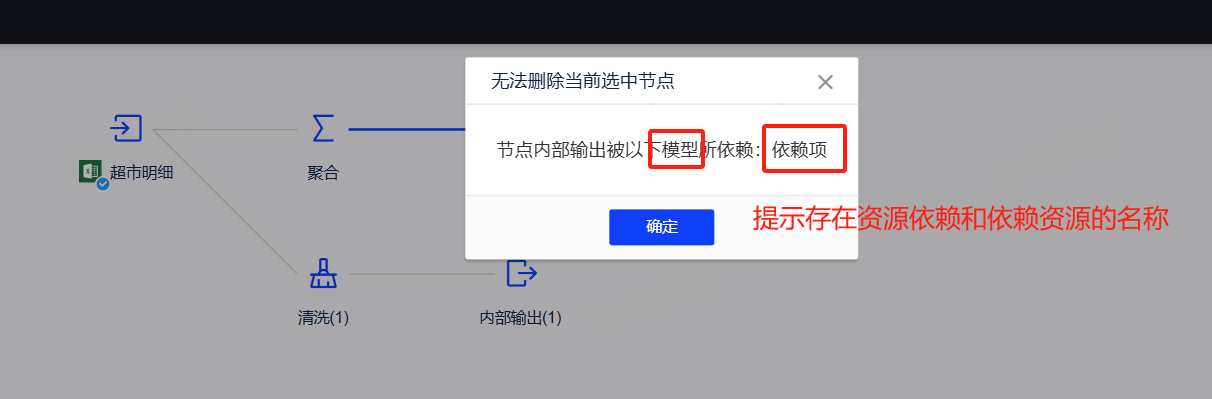 路径:点击数据源-数据准备-找到被覆盖的数据准备-编辑数据准备-删除对应输出表的输出节点;会提示依赖资源和依赖资源名称。