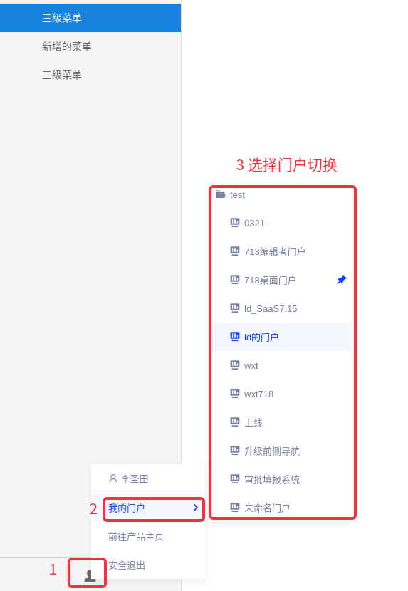 (2)用户通过链接访问,登录后进入已发布的门户页面,点击头像,通过门户导航切换访问。