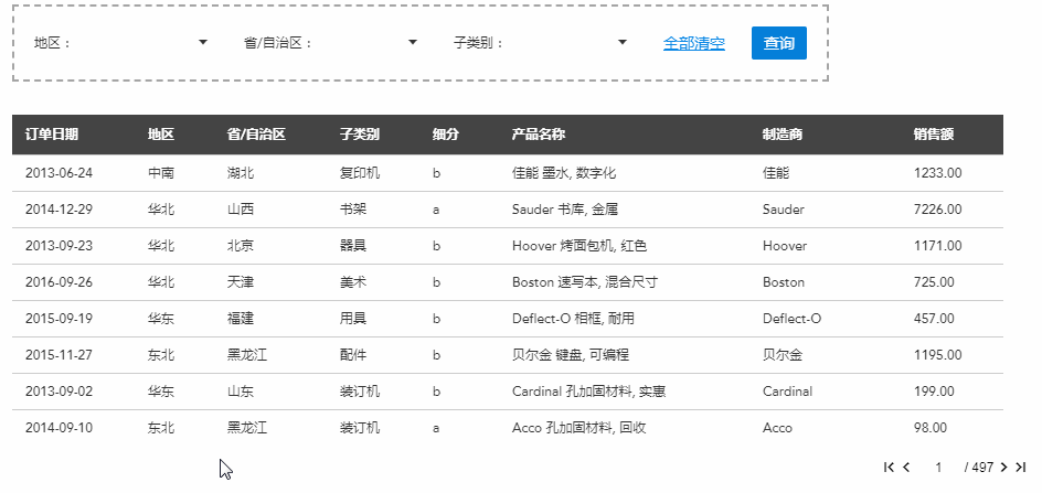 1.概述2. 快速入门1.概述本产品可将多个筛选器组成筛选器组,组内的筛选器变更选项后不会立即对图表生效,等组内多个筛选器都完成变更操作后再一起对图表生效。这样一来,减少了不必要的数据查询,可提高需要变更多个筛选器选项时的操作体验。 筛选器组的使用效果如下图所示: 2. 快速入门将多个筛选器组成筛选器组的操作步骤如下: (1)在报告编辑页面,选择“筛选器组”控件,在画布上添加一个筛选器组; (2)选中筛选器组,在设置面板中勾选需要影响的筛选器,被选择的筛选器将组成筛选器组,并受“筛选器组”控件影响,即完成设置;