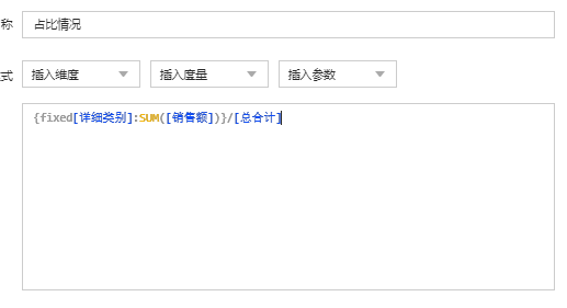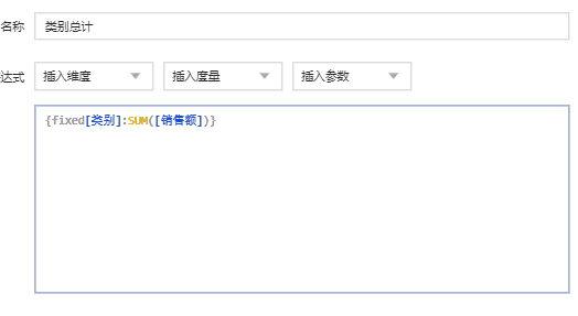假如想通过知道某一类别商品销售额占全销售额的百分比情况,这时可以在计算中使用FIXED。