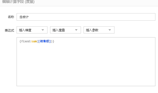 提示:这里您可以跳过FIXED和冒号 {SUM([总计])}直接输入