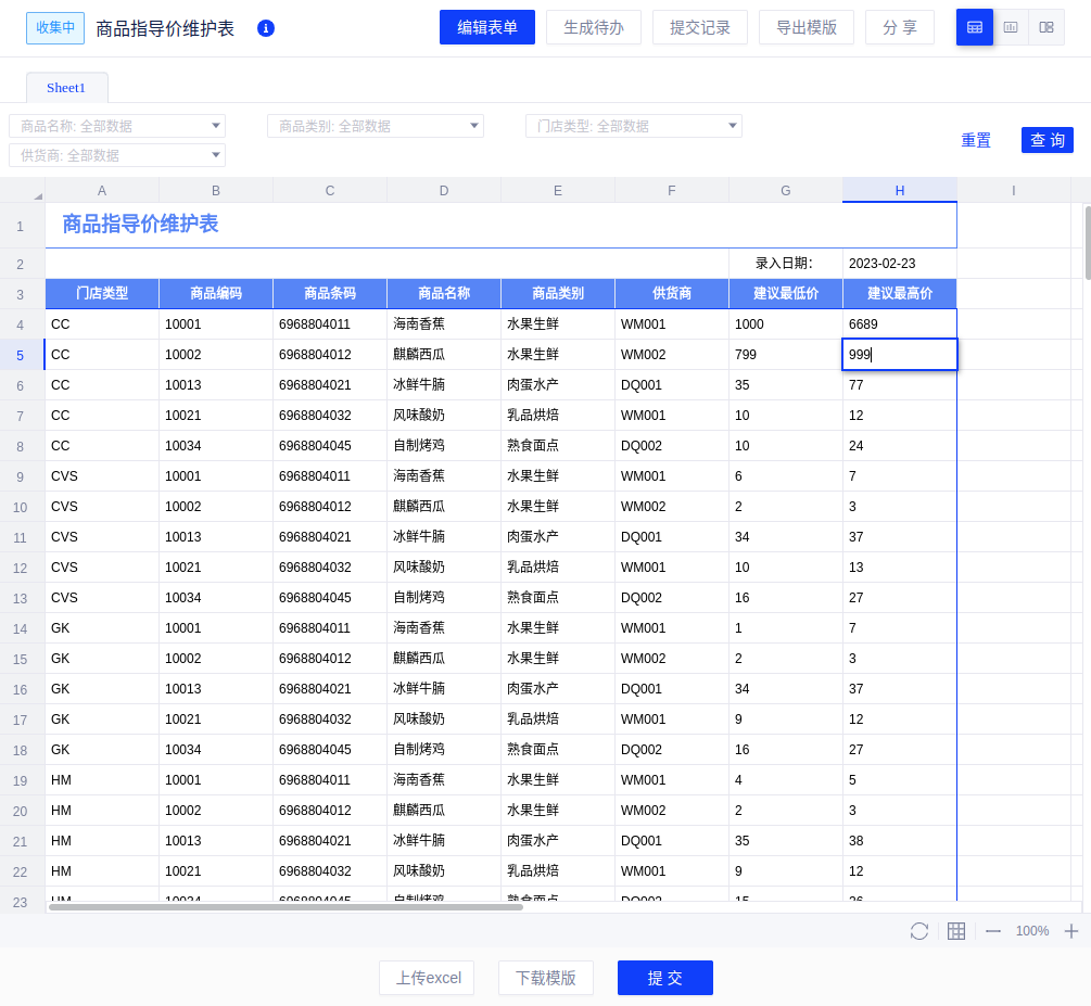 - 数据保护:只能修改“建议最低价”和“建议最高价”,防止误操作其他字段