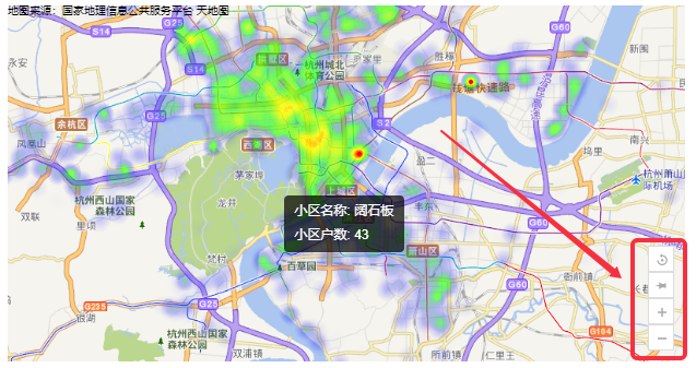(3)双击热力地图,可以进入图表内操作,在该状态下,可以对热力地图进行放大并移动地图显示区域,以进一步了解关心的区域;