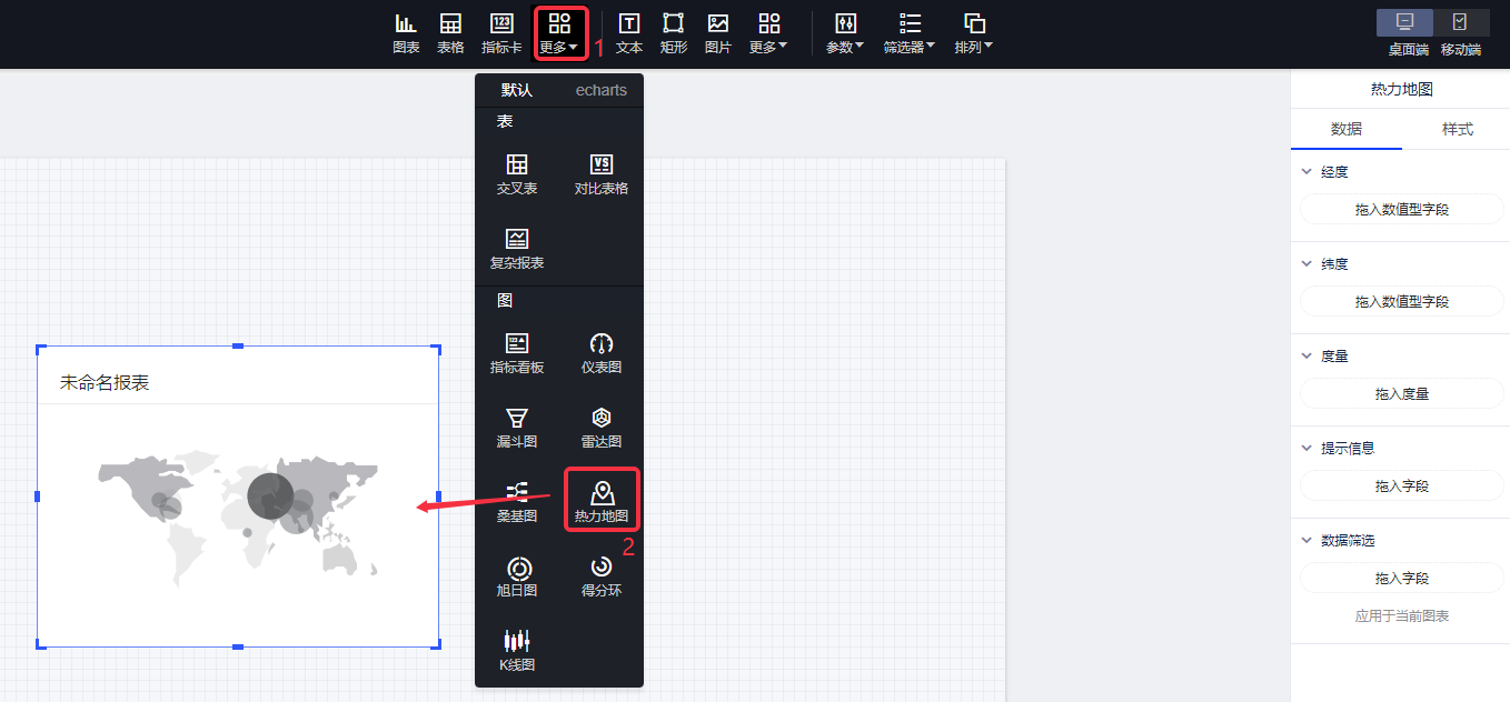 (1)选择“热力地图”控件,在画布上插入一个空白的热力地图;