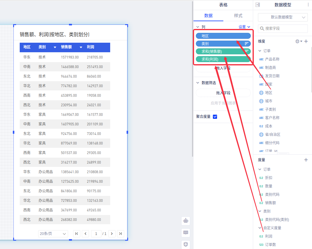 (1)选择“表格”控件,在画布上画出“表格”(目前智能分析只支持表格),并给表格添加需要的字段;