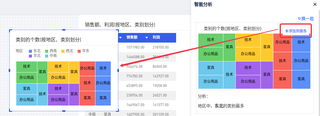 (4)如果您正在编辑报告,可以直接将智能分析发现的图表直接添加至画布,并可在该图表的基础上继续编辑。