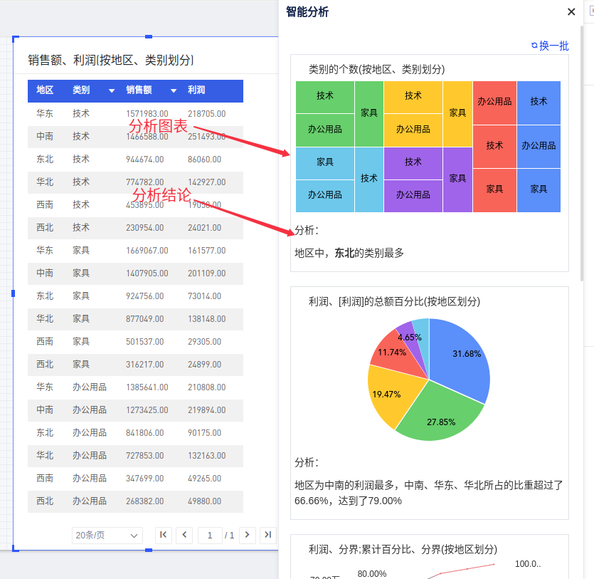 (3)点击后系统会自动基于表格的数据进行分析,给出你可能会关心的图表跟分析结论: