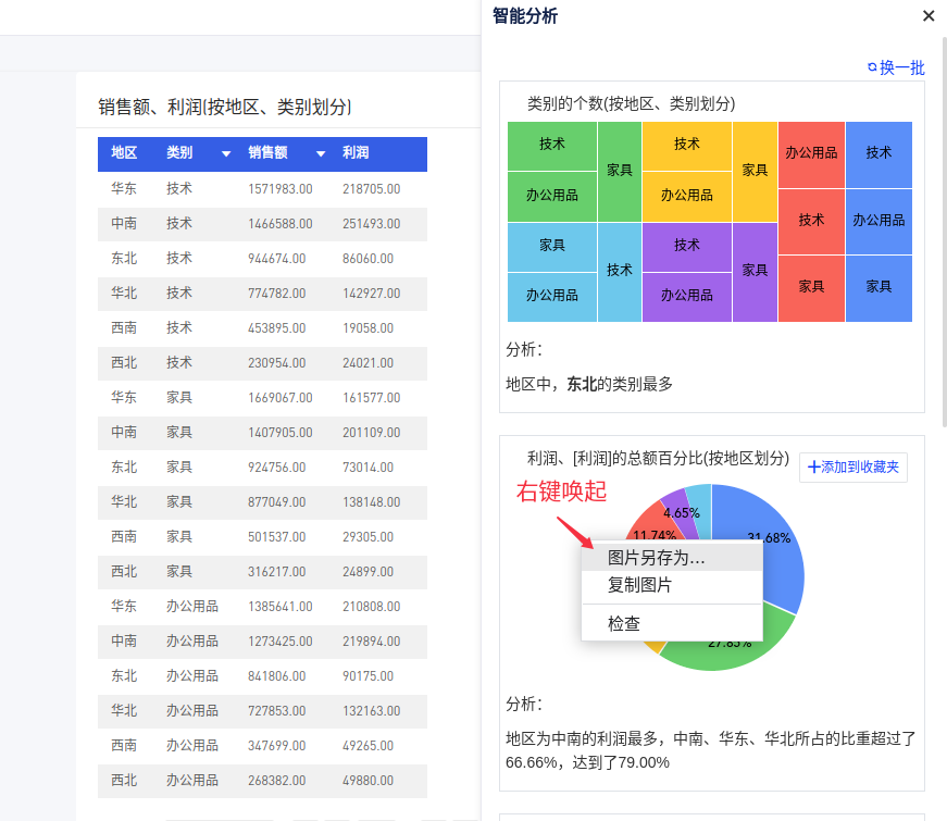 (3)您还可以将智能分析中的图表导出成图片保存在本地,鼠标移动至图表区域后右键唤起图片保存菜单。