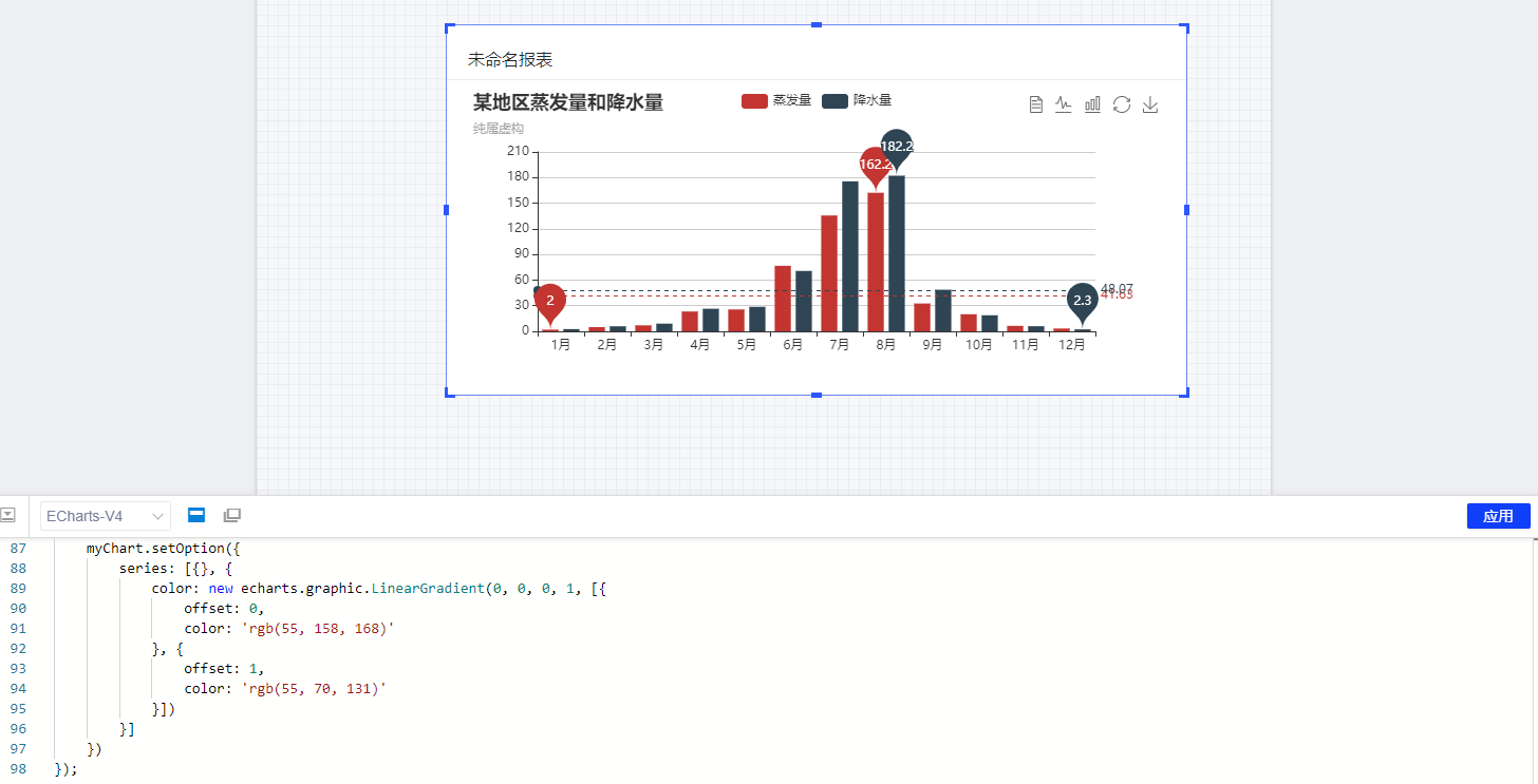 案例1:在代码编辑区编写JavaScript代码,生成自定义图表