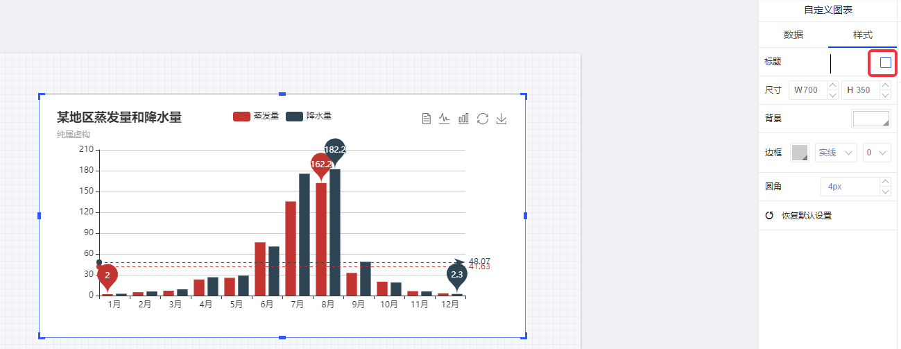 您可以通过拖拽改变图表大小,也可在样式面板对标题及整个图表的背景、边框、圆角等作调整。