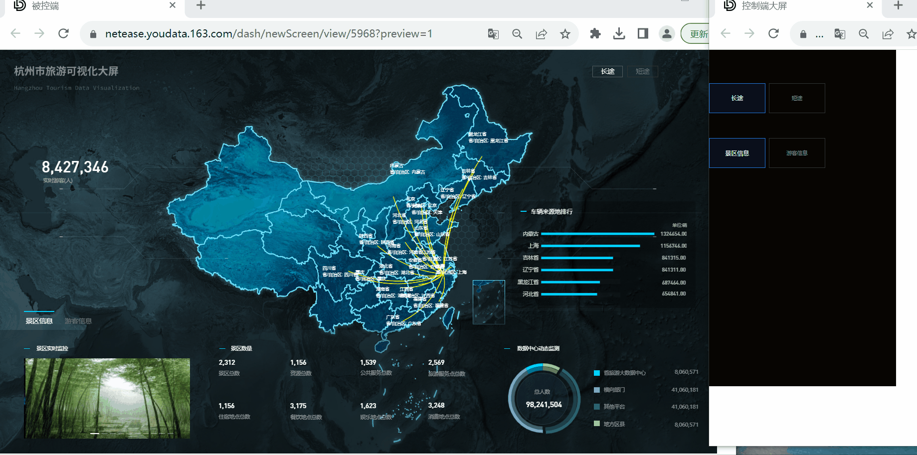 支持跨大屏绑定交互参数,实现主屏控制其他展示屏的场景(如使用PC或手机,控制大屏幕上展示大屏的切换)。