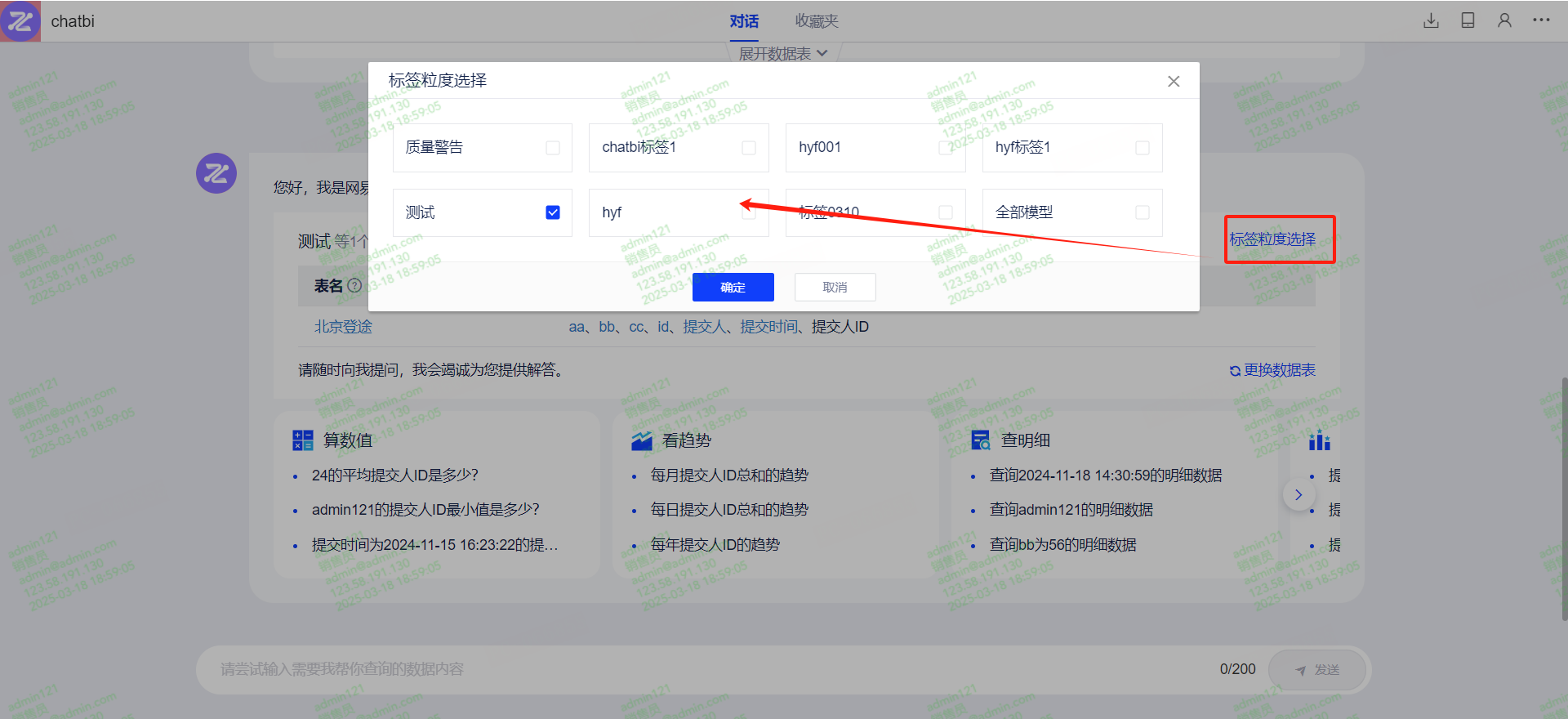 (3)您也可以在ChatBI界面按标签筛选模型。