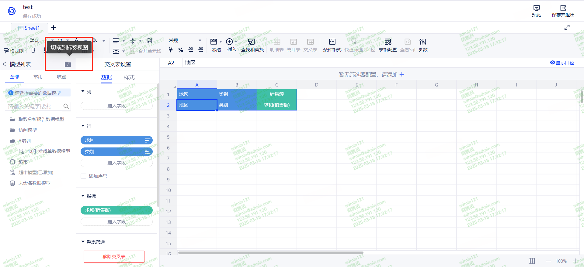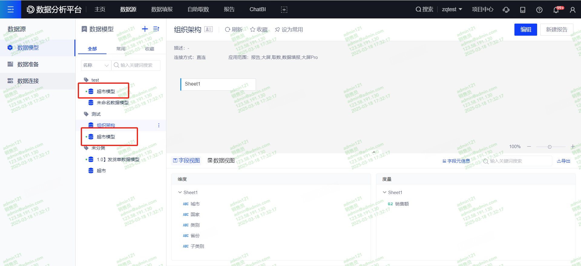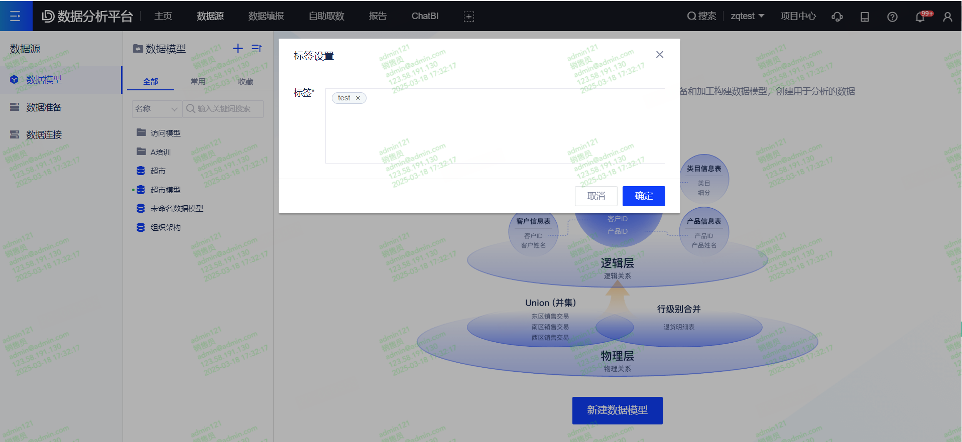 (2)点击【数据源】-【数据模型】,选中需要设置模型,右键呼出菜单栏,选择设置标签,可给模型添加标签,一个模型可绑定多个标签。