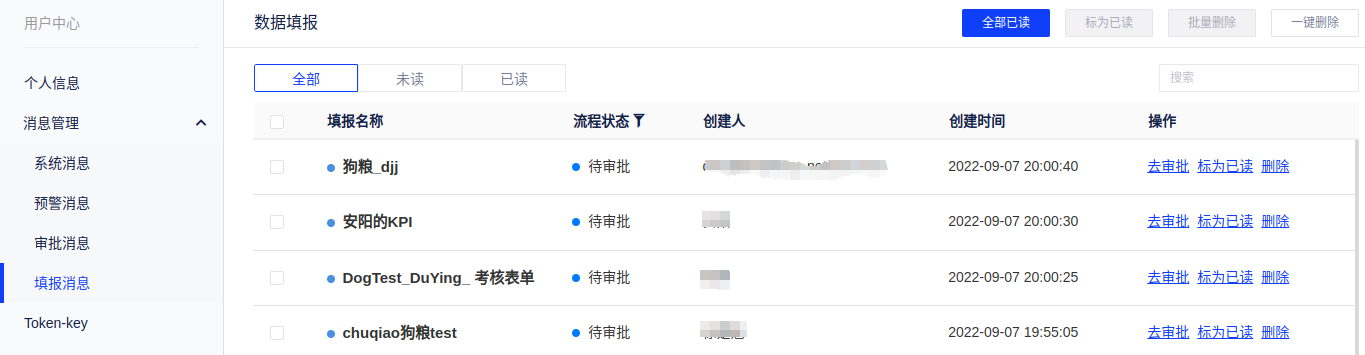 - 审批消息:如果您是域管理员或项目管理员,则会有成员、变动申请等需要审批