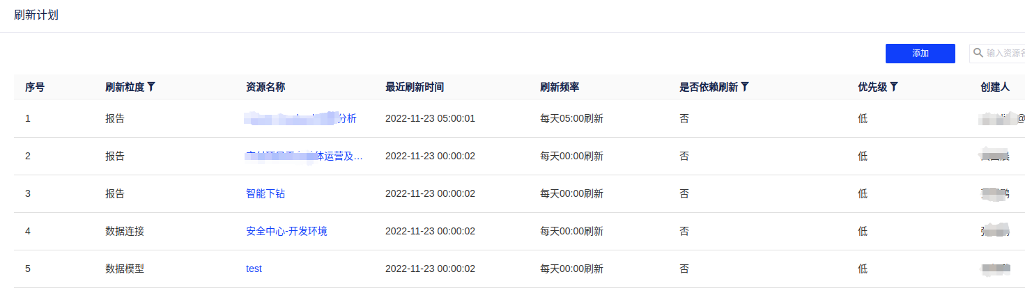 (5)在刷新计划管理界面,我们可以看到该项目下所有的刷新计划,并进行统一管理维护。