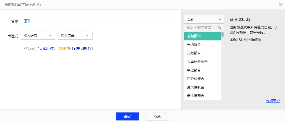 于是,我们需要建立R\F\M的平均值字段,并判断的用户的R\F\M值是否大于均值,示例表达式如下: