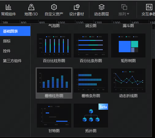 栅格柱形图的样式与柱形图的样式相近,设置过程可参考柱形图。