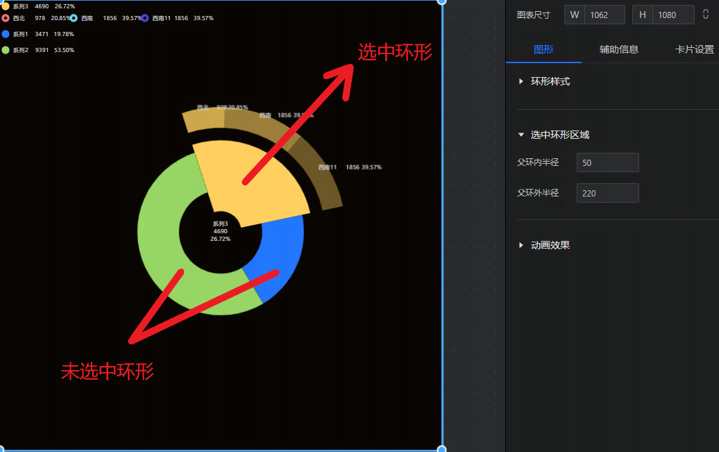 - 选中环形区域:设置轮播至选中区域的父环的内半径、外半径。