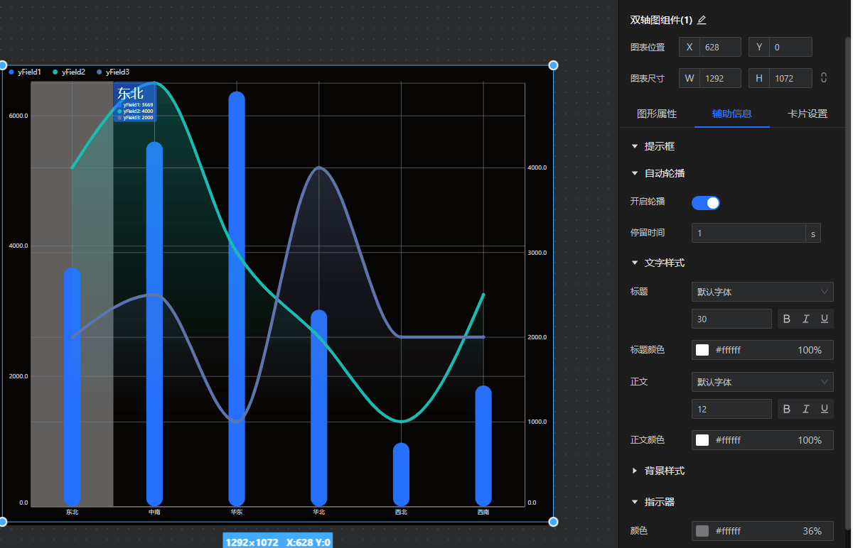 - 提示框:设置双轴图提示框文字、背景、指示器及是否开启轮播。