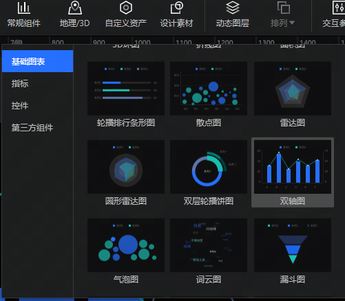 - 坐标轴:设置双轴图x轴、y左轴、y右轴的轴标签、轴线、轴标题等信息。