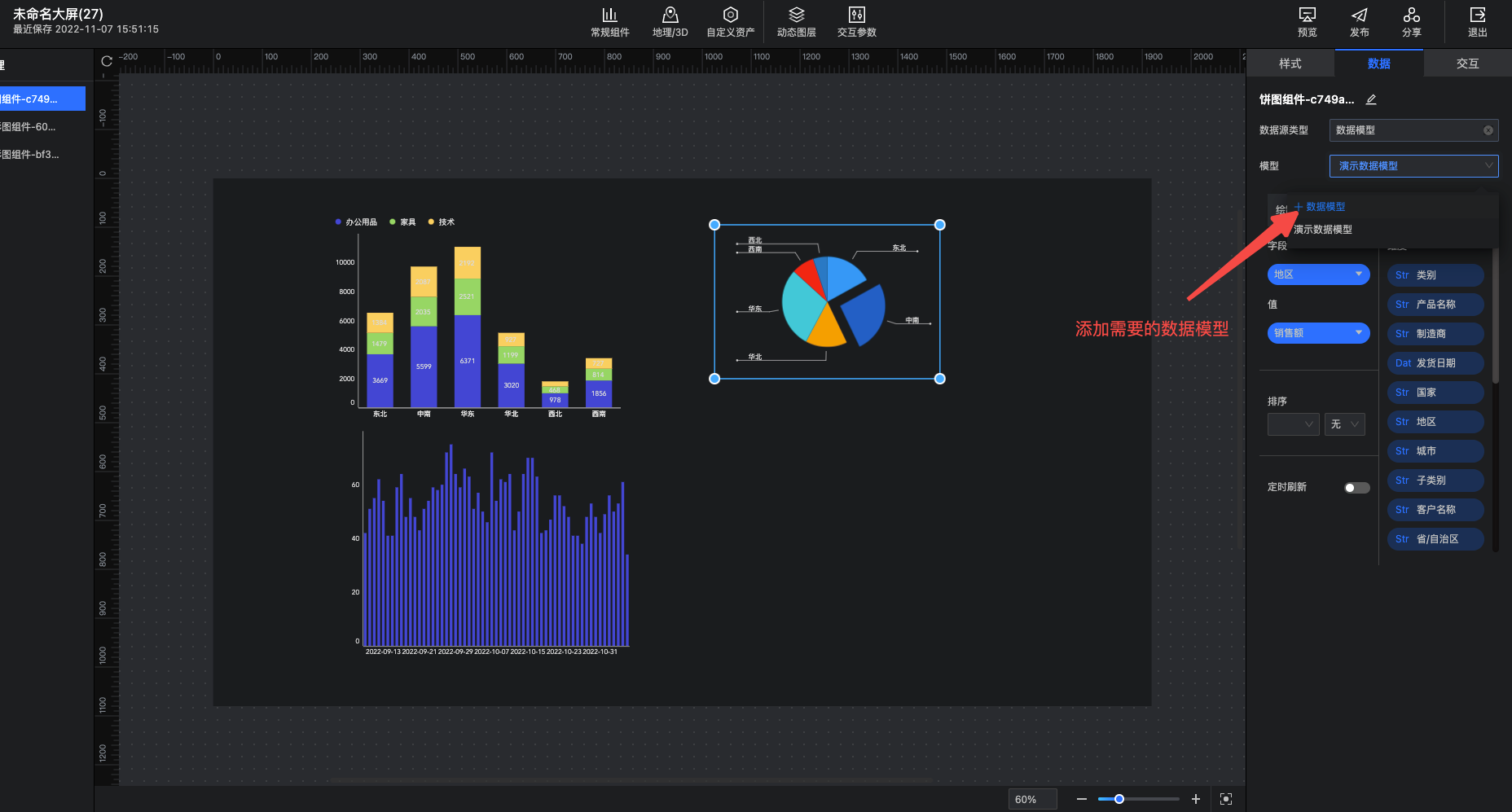 关于“数据模型”的更多使用说明,可阅读“数据源->数据模型”章节
