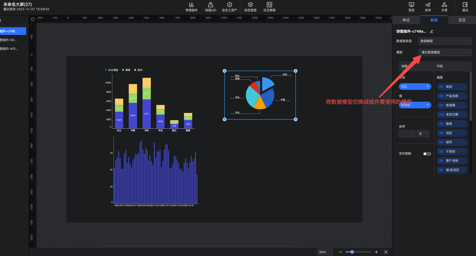 添加完之后,将组件的数据模型切换成要使用的模型。