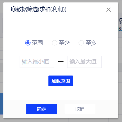 - 将度量拖入表配置区的“数据筛选”位置,将弹出配置窗口。