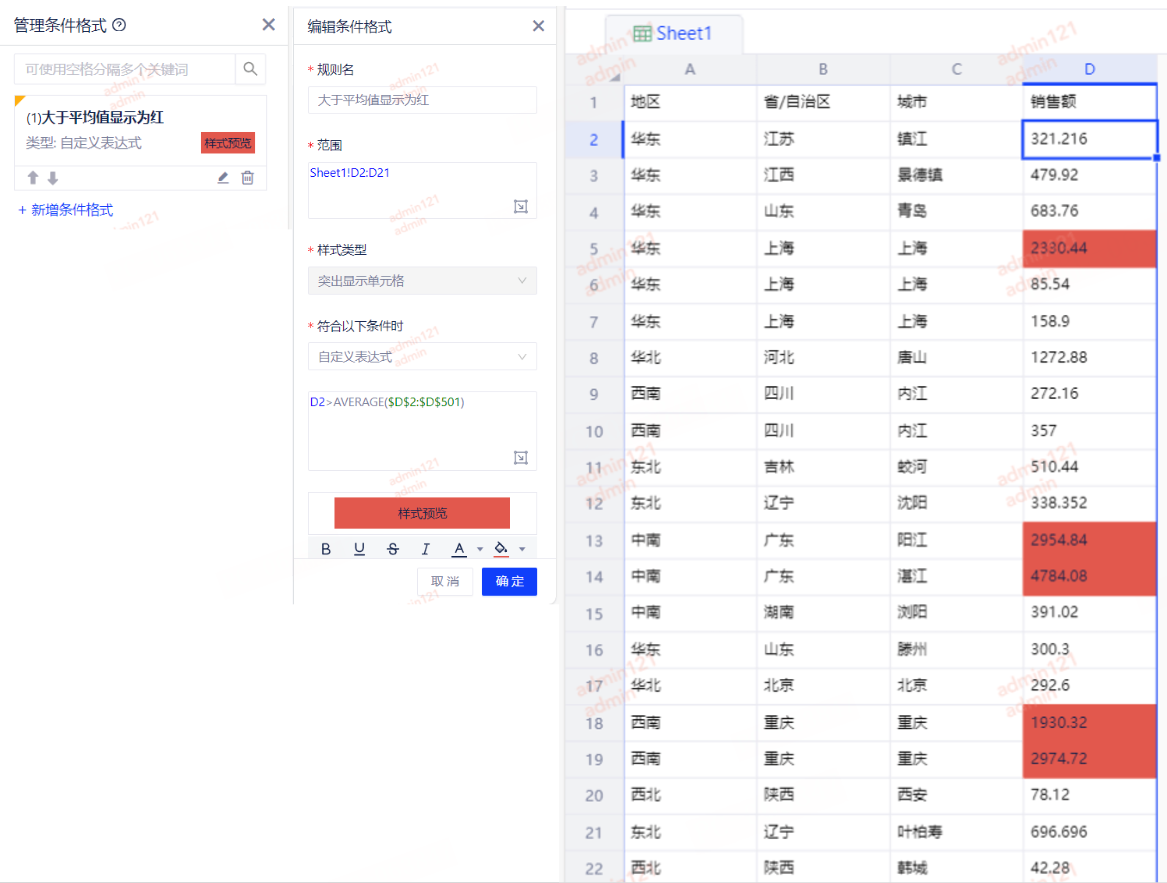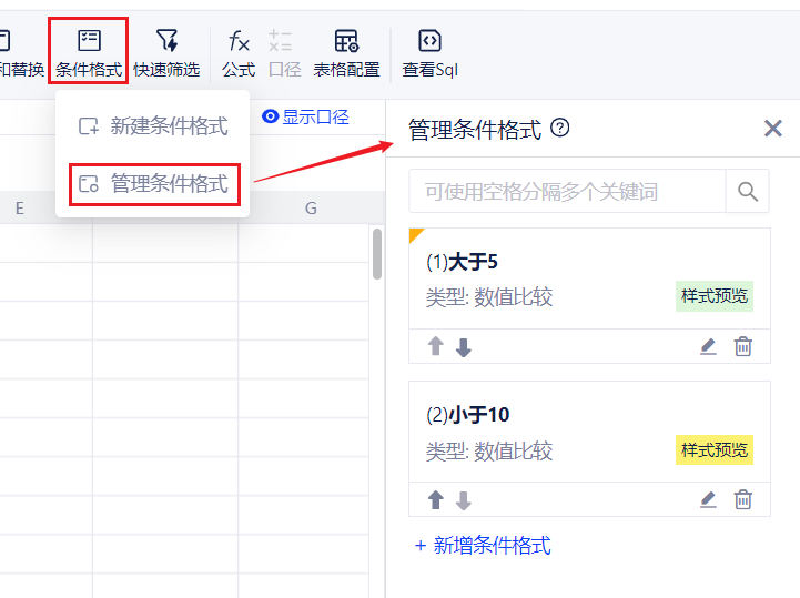 - 其他说明:如果存在多个条件格式,系统将会按照优先级从高到低展示。