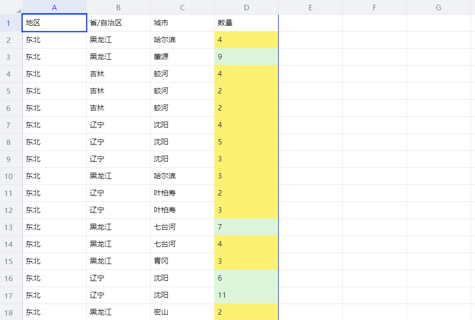 - 范围:支持选择一个数据应用范围,支持长按ctrl选择离散的单元格。