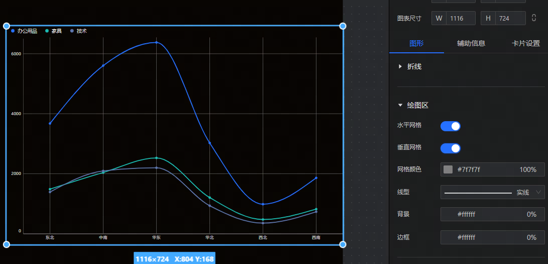 - 图例:设置折线图是否要展示图例,以及图例的展示位置、文字样式。